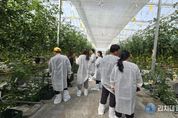 리치데일리 김상현 기자 | 봉화군은 임대형 스마트팜에 입주한 스마트원예작목반원 9명이 지난 27일 관외지역의 농업회사법인에서 운영하는 대규모 스마트팜 벤치마킹을 했다고 밝혔다. 이번 벤치마킹은 올해 1월 봉성면 창평리에 준공된 임대형 스마트팜단지에 입주하여 정식한 서양계 완숙 토마토가 오는 4월 중순 본격적인 수확을 앞두고 대규모 스마트팜을 견학하여 선별, 물류 등 유통관리 등 운영 노하우를 배우기 위해 이뤄졌다. 작목반원들은 충남 논산시 광석면 소재 팜팜 스마트팜을 방문하여 관계자의 안내에 따라 유리온실, 복합환경제어시스템, 양액공급시스템, 에너지냉난방 시스템을 둘러보고 양광식 대표로부터 토마토 재배기술, 유통 노하우를 전해 듣는 시간을 가졌다. 2017년 11월 문을 연 농업회사법인 팜팜은 토마토 재배 및 유통 전문회사로서 10.7ha 규모의 스마트팜에서 방울토마토와 완숙토마토를 재배하여 신세계 푸드와 계약재배를 하고 있으며, 2024년 402억원의 매출을 올린 바 있다. 특히 이 스마트팜에서는 여름에는 냉방시스템을 이용하고 광량이 부족한 겨울에는 LED 보광등을 활용해 사계절 내내 토마토가 생
