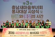 리치데일리 김상현 기자 | 김태흠 충남도지사는 27일 도청 문예회관에서 열린 제3회 충남새마을부녀회 봉사대상 시상식에 참석, 지역사회를 위해 헌신해온 부녀회장들을 격려했다. 충남새마을회와 충남새마을부녀회가 주최·주관한 이번 행사에는 김 지사와 정광섭 도의회 부의장, 강승규 국회의원, 김정임 새마을부녀회 중앙연합회장, 박숙희 충남새마을부녀회장, 시군 새마을부녀회장 등 800여 명이 참석했다. 행사는 표창 수여, 우수사례 발표, 약속문 낭독, 기념촬영 등의 순으로 진행했다. 표창 수여에서 대상은 천영옥 논산시 채운면 새마을부녀회장이 받았다. 천 회장은 2015년부터 11년 동안 채운면 새마을부녀회장을 역임하며, 독거노인 480세대에 밑반찬을 제공하고, 부녀회원과 독거노인 간 1대 1 결연을 통해 청소와 빨래 봉사 등을 꾸준히 이어올 수 있도록 이끌어온 공로를 인정받으며 이번 영예를 안았다. 채운면 부녀회는 또 매년 120세대에 김장김치와 연탄을 지원하고, 11년 동안 헌옷을 수거·판매해 수익금 전액을 취약계층에 기부하는 등 공동체 봉사에 헌신해왔다. 우수상은 송미경 홍성군