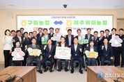 리치데일리 김상현 기자 | 구미시는 지난 27일 구미농협과 제주 위미농협이 고향사랑기부제 활성화와 지역 간 상생협력을 위해 각각 1,000만 원을 상호기부했다고 밝혔다. 이번 기부는 양 농협 임직원 각 100여 명이 자발적으로 참여해 마련됐다. 단순한 기부를 넘어 지역 간 응원과 교류를 확대하는 데 의미를 더했다. 양 기관은 지난해 6월 도·농 상생 자매결연을 체결한 이후 꾸준한 협력 관계를 이어오고 있다. 이날 기탁식에는 김장호 구미시장을 비롯해 이전광 구미농협 조합장, 현재근 위미농협 조합장, 이승철 농협중앙회 구미시지부장, 여창훈 농정지원단장과 양측 임직원, 남원읍장 등 20여 명이 참석해 고향사랑기부제의 취지와 성과를 공유했다. 이전광 구미농협 조합장은 “올해 상호기부의 첫 출발을 함께해 뜻깊다”며 “농협의 우수 농·축산물이 답례품으로 제공되는 만큼 기부 참여 확산에 힘을 보태겠다”고 말했다. 김장호 구미시장은 “먼 길 마다하지 않고 함께해 주신 제주 위미농협의 적극적인 참여에 감사드린다”며 “구미와 제주가 교류를 확대해 농촌에 활력을 불어넣고 지역경제에도 긍정적인 변화를 만들어가길 기대한다
