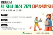 리치데일리 김상현 기자 | 서천군과 (사)서천사랑장학회가 지역 내 세 자녀 이상 가정의 경제적 부담을 덜고 지역 인재의 교육 기회를 보장하기 위해 대학생 생활지원금 지원사업을 추진한다. (사)서천사랑장학회는 ‘2026년도 상반기 세 자녀 이상 가정 대학생활지원금 지원계획’을 공고하고, 오는 4월 6일부터 17일까지 2주간 지원 신청을 받는다. 지원 대상은 공고일 기준 부모 또는 학생이 서천군에 3년 이상 계속해 주소를 두고 있는 세 자녀 이상 가정의 대학생이다. 지원 금액은 신입생의 경우 1학년 1학기 최초 학기에 100만원, 재학생의 경우 학기당 50만원의 생활지원금이 지급된다. 특히 첫째 자녀부터 지원이 가능해 다자녀 가정의 실질적인 교육비 부담 완화에 도움이 될 것으로 기대된다. 신청은 서천군청 자치행정과 교육지원팀에서 접수하며, 제출 서류는 지원신청서, 주민등록초본, 가족관계증명서, 대학 재학증명서 또는 등록금 납입증명서, 통장 사본, 개인정보 제공동의서 등이다. 자세한 사항은 서천군청 누리집 공지사항을 통해 확인할 수 있다.