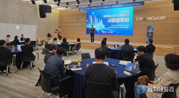 리치데일리 김상현 기자 | 포항강소특구육성센터는 21일 포항 체인지업그라운드에서 지역 중소·벤처기업과 유관기관 관계자 100여 명이 참석한 가운데, ‘2026년 포항 강소연구개발특구 사업설명회’를 개최했다.