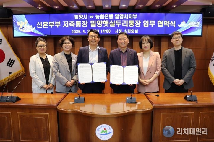 리치데일리 김상현 기자 | 경남 밀양시는 21일 시청 소회의실에서 농협은행 밀양시지부와 ‘밀양햇살두리통장 지원사업’의 원활한 추진을 위한 업무협약을 체결했다.