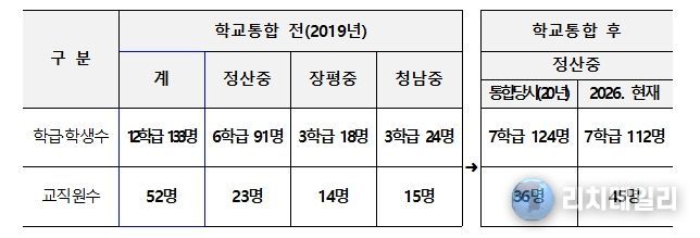 이번 방문은 정산중학교의 최신 교실을 비롯해 공작실, 가상현실(VR) 체험실 등 특별실과 기숙사 등 학생 생활시설을 둘러보는 일정으로 진행된다. 이어 현장 간담회를 통해 학교 통합 이후의 교육과정 운영 방식, 주요 성과 및 애로사항 등 여러 방면에서 현장의 이야기를 청취한다.