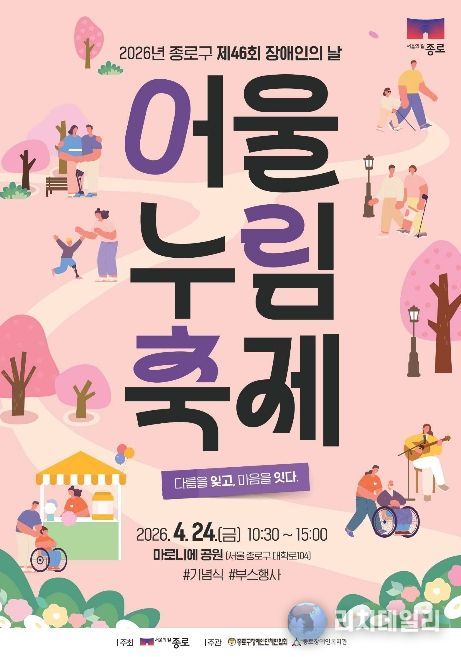 종로구는 제46회 장애인의 날을 맞아 4월 24일 10시 30분부터 15시까지 마로니에 공원에서 '2026년 종로구 어울누림 축제'를 개최한다.