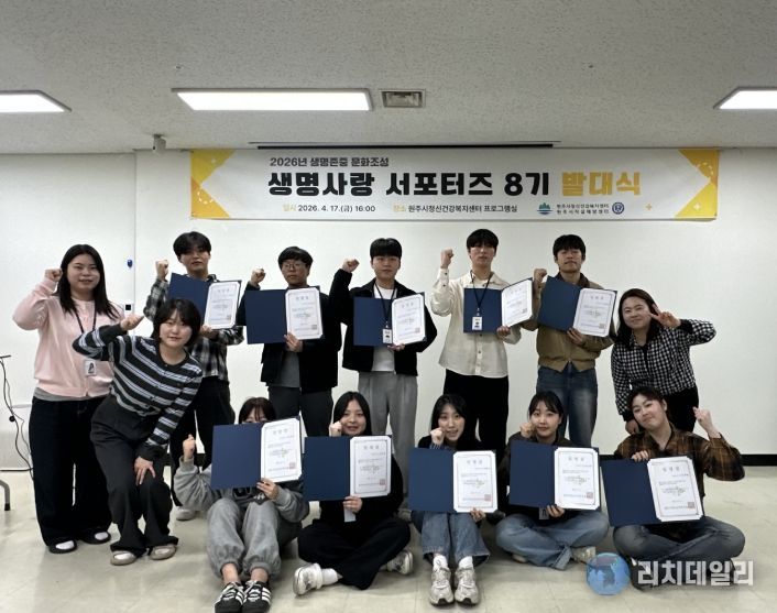 리치데일리 김상현 기자 | 원주시자살예방센터는 지난 17일 자살 예방과 생명 존중 문화 확산을 위한 ‘제8기 생명사랑 서포터즈’ 발대식을 개최했다.