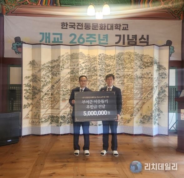 리치데일리 김상현 기자 | 한국전통문화대학교 교직원일동은 개교 26주년 기념행사에서 저소득 가구의 초·중·고 학생 장학금으로 사용해 달라며 이웃돕기 성금 500만 원을 부여군에 기탁했다고 22일 밝혔다.