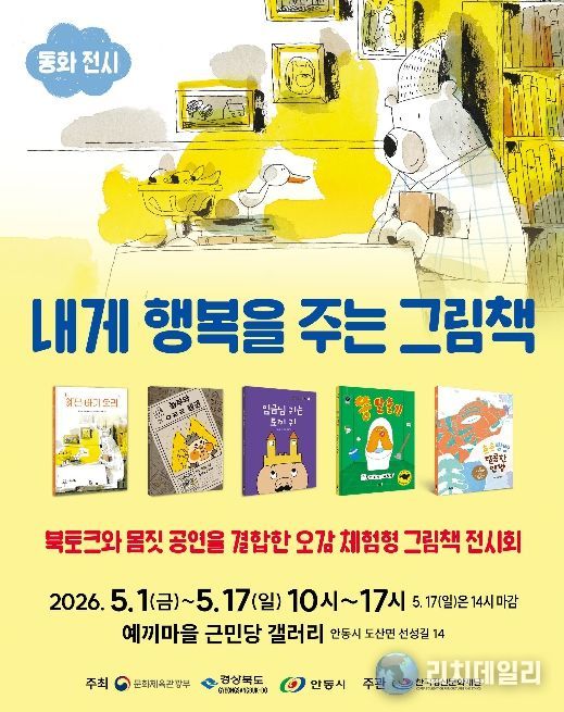 리치데일리 김상현 기자 | 안동시와 (재)한국정신문화재단은 가정의 달 5월을 맞아 5월 1일부터 17일까지 안동 선성현문화단지 근민당 갤러리에서 ‘내게 행복을 주는 그림책’ 행사를 개최한다고 밝혔다.