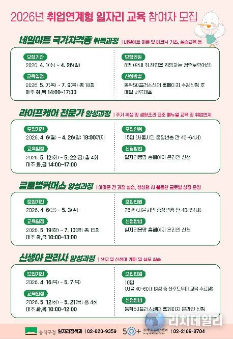박일하 동작구청장은 “구민들이 교육을 넘어 실제 취업으로 이어지는 성과를 체감할 수 있도록 취업 연계 중심의 일자리사업을 확대했다”며, “앞으로도 구민의 든든한 일자리 파트너로서 직무 교육부터 취업 연계, 사후 관리까지 체계적으로 지원하겠다”고 말했다.