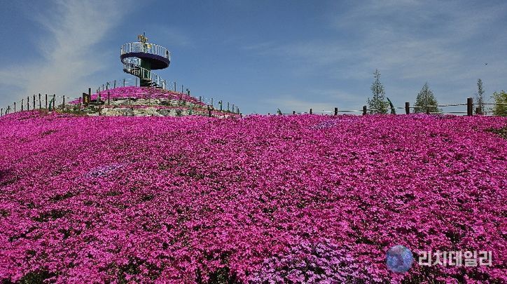 거창창포원에 봄을 알렸던 벚꽃이 진 뒤, 황강전망정원 일원에 진분홍빛 꽃잔디가 만개하고 있다. 이와 함께 튤립, 비올라, 데이지, 루피너스 등 다양한 꽃으로 정원을 단장해 나들이에 나선 나들이객들의 발길이 이어지고 있다.