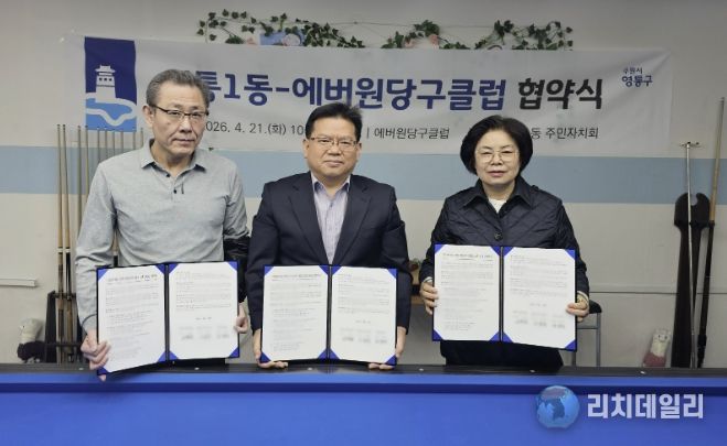 리치데일리 김상현 기자 | 수원시 영통구 영통1동 행정복지센터와 영통1동 주민자치회는 지난 21일, 주민자치센터 프로그램의 다양성과 전문성을 강화하기 위해 관내 민간체육시설인 에버원당구클럽과 업무협약을 체결했다.
