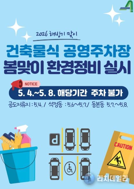 세부 정비 일정은 ▲공도저류지 공영주차장(5월 4일) ▲석정동 공영주차장(5월 6일~7일) ▲동본동 공영주차장(5월 7일~8일) 순으로 진행된다. 공단은 청소 및 시설 보수 시간 중 발생할 수 있는 안전사고를 예방하기 위해 해당 기간 주차장 이용을 일시적으로 제한한다.
