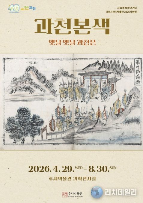 리치데일리 김상현 기자 | 과천시 추사박물관은 시 승격 40주년을 기념하여 ‘2026 테마전 '과천본색–옛날 옛날 과천은'’을 개최한다고 밝혔다. 이번 전시는 4월 29일 오후 3시 개막식을 시작으로 8월 30일까지 추사박물관 기획전시실에서 진행된다.