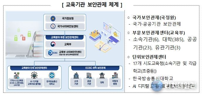 2027년부터는 ‘교육부 사이버안전센터(ECSC)’에서 운영 중인 ‘인공지능(AI) 사이버 보안관제 시스템’을 시도교육청 보안관제에도 적용하여, 교육기관에 대한 사이버침해 시도에 대해 공동의 데이터 수집·분석·대응할 수 있도록 추진할 계획이다.