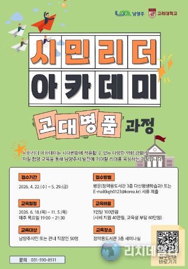 리치데일리 김상현 기자 | 남양주시는 시민의 자치 역량 강화를 위해 ‘남양주시 시민리더 아카데미’ 제20기 수강생을 모집한다고 22일 밝혔다.