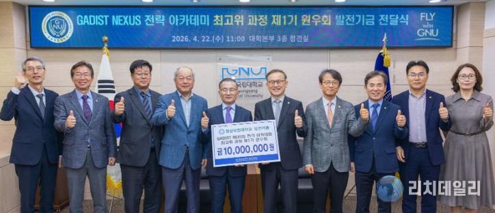 리치데일리 김상현 기자 | 경상국립대학교는 4월 22일 오전 11시 대학본부 3층 접견실에서 ‘GADIST NEXUS 전략 아카데미 최고위 과정’ 제1기 원우회의 대학발전기금 전달식을 개최했다.