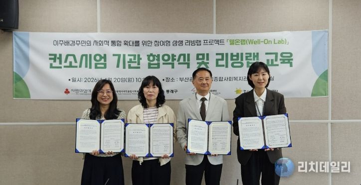리치데일리 김상현 기자 | 부산 동래구는 사직종합사회복지관(관장 황승호)이 지난 20일 이주배경주민의 사회적 통합 확대를 위한 소셜리빙랩 프로젝트 ‘웰온랩(Well-on Lab)’의 성공적인 추진을 위해 동래구청 및 유관 기관과 업무협약을 체결했다고 밝혔다.