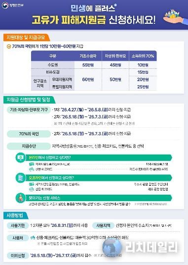 한편 장재혁 합천군수 권한대행은 “고유가 피해지원금 사용기한(2026.8.31.까지)과 경남도민 생활지원금 사용기한(2026.7.31.까지)이 상이함에 따라 군민들이 사용에 혼선이 없도록 당부드린다”며 “모든 군민이 빠짐없이 지원을 받을 수 있도록 업무 추진에 만전을 기하겠다”고 밝혔다.