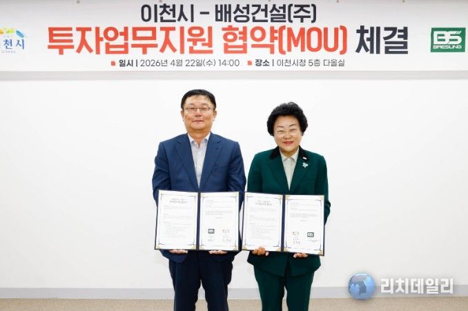 리치데일리 김상현 기자 | 이천시가 22일 배성건설㈜와 203억 원 규모의 투자업무지원협약을 체결하고, 기업의 신규 공장 신설을 본격 지원한다.