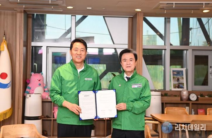 김태흠 충남도지사는 22일 서울시장 집무실에서 오세훈 시장과 ‘태안국제원예치유박람회(태안박람회)와 서울국제정원박람회(서울박람회) 성공 개최를 위한 업무협약’을 체결했다.