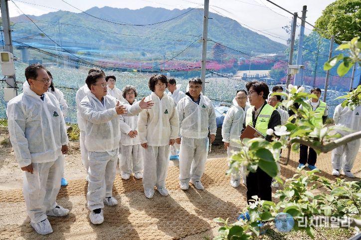 리치데일리 김상현 기자 | 경상북도농업기술원은 22일 사과 주산지 영주시에서 과수화상병 확산 방지를 위해 중앙·도 합동 개화기 약제 방제 추진 상황을 점검했다.