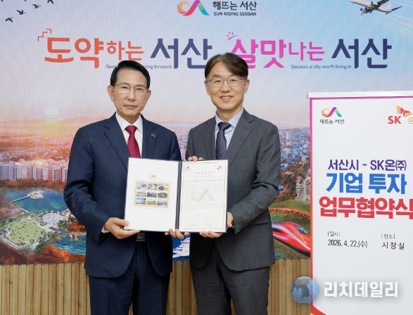 시는 22일 시청 시장실에서 이완섭 서산시장, 피승호 SK온㈜ 총괄 부사장이 참석한 가운데 협약식을 개최했다.