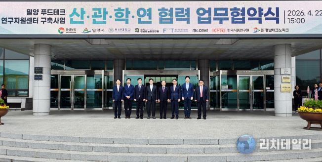 리치데일리 김상현 기자 | 경상남도는 22일 밀양시청에서 ‘밀양 푸드테크 연구지원센터 구축’을 위한 산·관·학·연 협력 업무협약(MOU)을 체결하고, 농림축산식품부가 추진하는 105억 원 규모의 ‘푸드테크 연구지원센터 구축사업(스마트유통 분야)’ 공모 준비에 본격 착수했다.