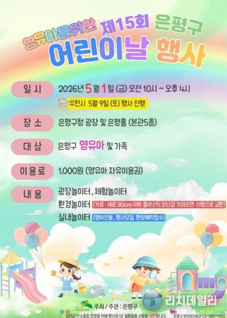 리치데일리 김상현 기자 | 서울 은평구는 어린이날을 맞아 내달 1일 은평구청 광장과 은평홀에서 ‘제15회 영유아를 위한 어린이날 행사’를 개최한다고 밝혔다.