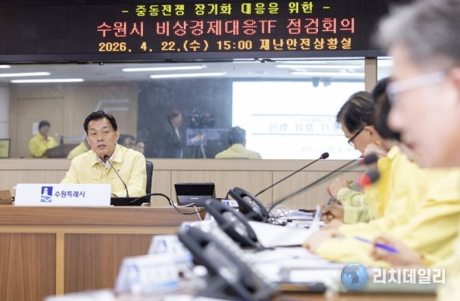 이재준 시장은 22일 시청 재난안전상황실에서 ‘중동전쟁 장기화 대응을 위한 수원시 비상경제대응 태스크포스 점검회의’를 주재하고, “중동전쟁 장기화로 어려움을 겪는 시민들 피부에 와닿는 대응책을 지속해서 발굴해 신속하게 시행해야 한다”며 “시민에게 실질적으로 도움이 되는 지원책을 적극적으로 발굴하라”고 말했다.