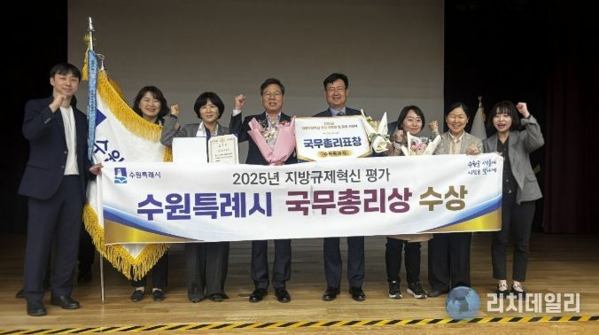 리치데일리 김상현 기자 | 수원특례시가 행정안전부 주관 ‘2025년도 지방규제개혁 유공’ 평가에서 규제개혁 성과를 인정받아 국무총리 기관 표창을 받았다. 시상식은 22일 정부세종청사에서 열렸다. 수원시는 개인 표창도 받았다.