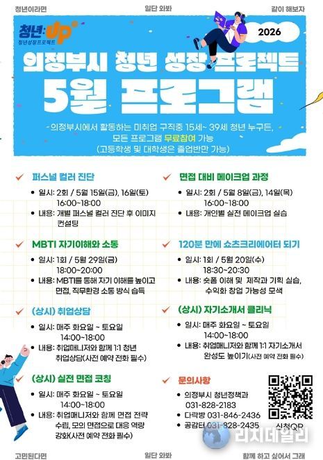 리치데일리 김상현 기자 | 의정부시는 미취업 청년의 취업 준비 역량 강화를 위해 ‘청년성장프로젝트’ 5월 프로그램을 운영한다.