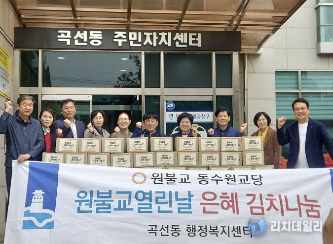 리치데일리 김상현 기자 | 원불교 동수원교당은 지난 22일 수원시 권선구 곡선동 행정복지센터에서 봄맞이 ‘은혜김치 나눔’ 전달 행사를 개최하고, 정성껏 담근 김치 30박스를 곡선동에 전달했다.