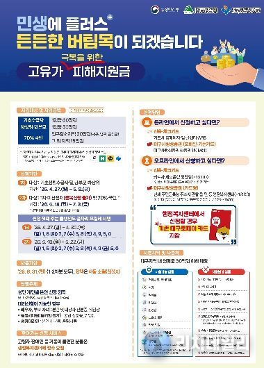 리치데일리 김상현 기자 | 대구 중구는 중동전쟁 발 고유가·고환율·고물가로 인한 구민의 경제적 부담을 덜고 취약계층을 지원하기 위해 ‘고유가 피해지원금’ 신청을 접수한다.