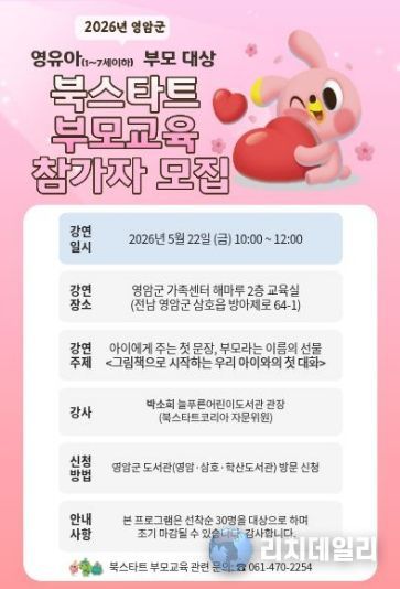 리치데일리 김상현 기자 | 영암군이 ‘2026 북스타트 주간’을 맞아 영유아 부모를 위한 부모교육을 운영한다.