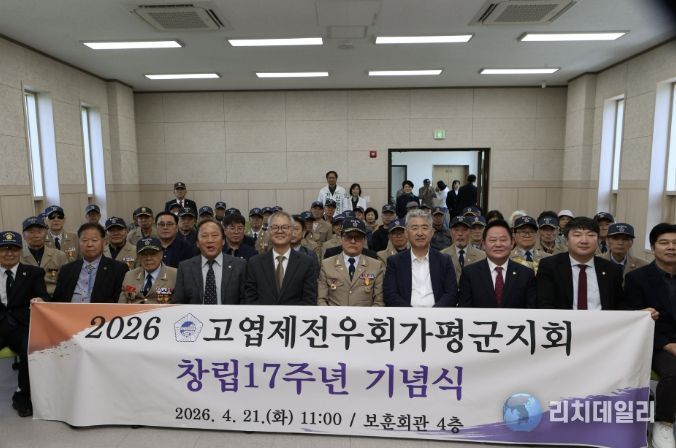 리치데일리 김상현 기자 | 가평군은 지난 21일 가평군보훈회관 회의실에서 ‘대한민국고엽제전우회 가평군지회 창립 제17주년 기념식’을 개최했다고 밝혔다.
