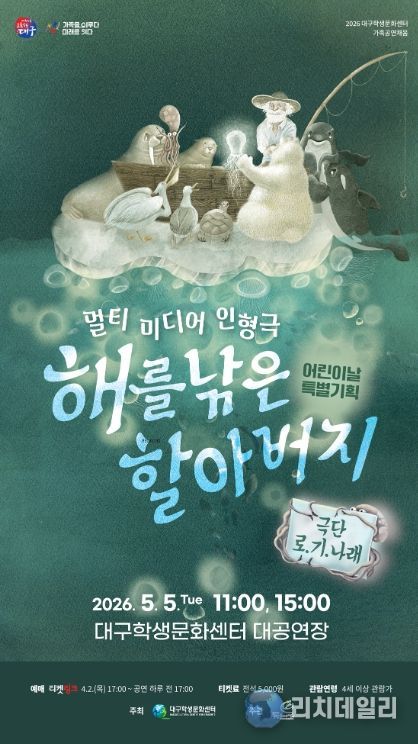 리치데일리 김상현 기자 | 대구학생문화센터는 어린이날을 맞아 어린이와 가족 관객을 위한 특별 기획공연 '멀티미디어 인형극 해를 낚은 할아버지'를 오는 5월 5일 대공연장에서 선보인다.