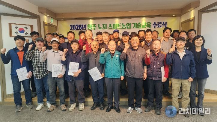 리치데일리 김상현 기자 | 영주시농업기술센터는 지난 23일 농업체험교육관에서 교육생과 관계자 등 36명이 참석한 가운데 ‘영주 노지 스마트농업 기술교육’ 수료식을 개최했다.