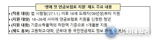 아울러 첫 보험료 지원으로 국민연금 가입자가 된 후에는 두루누리 보험료 지원, 저소득 지역가입자 보험료 지원, 실업크레딧 등 다양한 지원 제도의 혜택을 받을 수 있다.