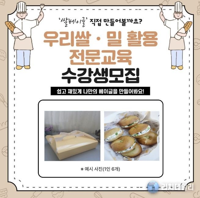 이번 교육은 우리 쌀을 활용한 ‘쌀 베이글과 쪽파 크림치즈 만들기’ 실습으로, 관내 부모와 자녀를 대상으로 운영된다.
