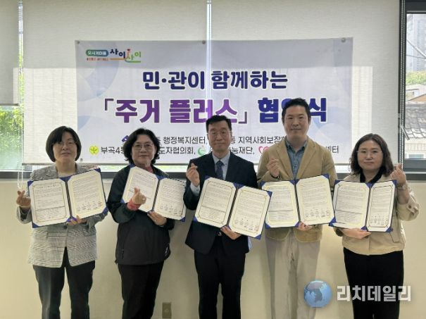 리치데일리 김상현 기자 | 부산 금정구 부곡4동은 지난 4월 21일 세정나눔재단, 금정구 자원봉사센터, 부곡4동 지역사회보장협의체, 부곡4동 새마을지도자협의회와 함께 『민관협력 주거 플러스』 사업 추진을 위한 업무협약을 체결했다.
