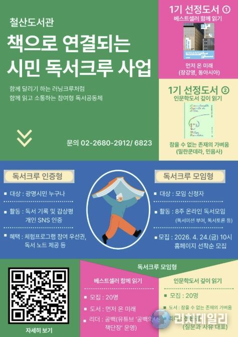 철산도서관은 오는 5월부터 ‘책으로 연결되는 시민 독서크루’ 사업을 본격 운영한다고 24일 밝혔다.