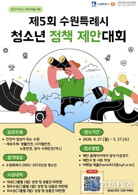 수원시청소년청년재단 관계자는 “청소년이 지역 문제를 스스로 고민하고 정책으로 제안하는 의미 있는 과정”이라며 “참신한 아이디어가 실제 정책으로 이어질 수 있도록 많은 관심과 참여를 바란다”고 말했다.