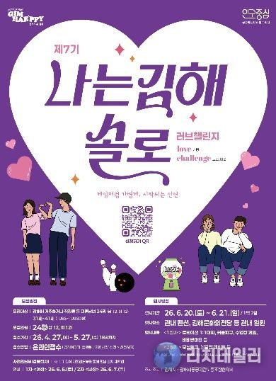 리치데일리 김상현 기자 | 김해시는 오는 6월 20일부터 21일까지 1박 2일 일정으로 관내 펜션과 김해문화의전당 등에서 진행하는‘제7기 나는 김해솔로-러브챌린지’참가자 24명(남·여 각 12명)을 모집한다고 24일 밝혔다.