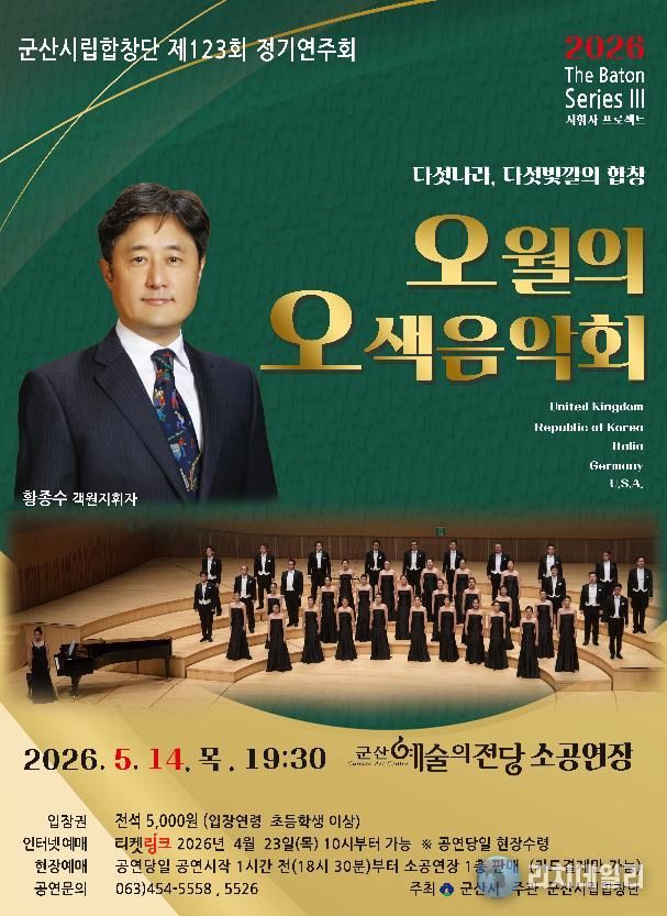 리치데일리 김상현 기자 | 군산시립합창단이 오는 5월 14일 오후 7시 30분, 군산예술의전당 소공연장에서 제123회 정기연주회 ‘오월의 오색음악회’를 개최한다.