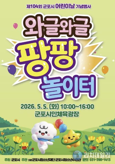 리치데일리 김상현 기자 | 군포시는 제104회 어린이날을 맞아 오는 5월 5일 오전 10시부터 오후 4시까지 군포시민체육광장에서 ‘와글와글 팡팡 놀이터’를 주제로 어린이날 기념행사를 개최한다.