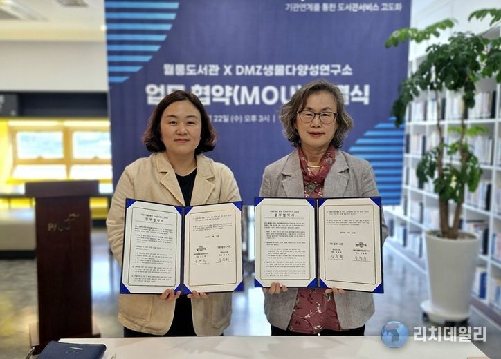 리치데일리 김상현 기자 | 파주시 월롱도서관은 지난 22일 디엠지(DMZ)생물다양성연구소와 지역사회 독서진흥 및 생태환경 분야 협력을 위한 업무협약을 체결했다.