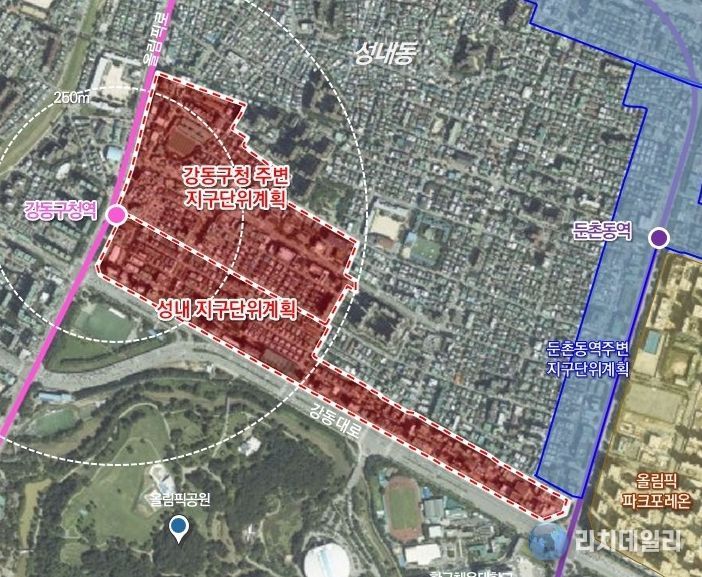 구는 이번 계획 재정비가 인근 강동역 일대 역세권 활성화사업과 둔촌동역 주변, 길동역·굽은다리역·명일역 일대 지구단위계획과도 연계되어, 강동대로 등 주요 도로변 일대를 다양한 기능이 결합된 복합 공간으로 재편시키고 지역 전반의 활성화에 기여할 것으로 기대하고 있다.