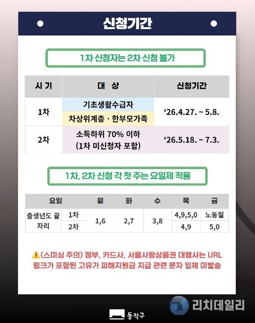 리치데일리 김상현 기자 | 동작구가 고유가·고환율·고물가로 인한 주민들의 경제적 부담을 완화하기 위해 고유가 피해지원금, 에너지 바우처 등 민생 안정 대책을 추진한다고 밝혔다.