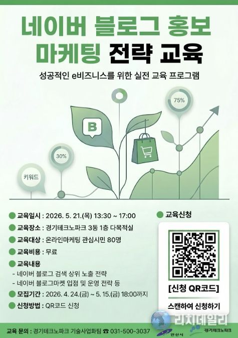 이번 교육은 5월 21일 오후 1시 30분부터 5시까지 경기테크노파크 3동 1층 다목적실(상록구 해안로 705)에서 진행된다.