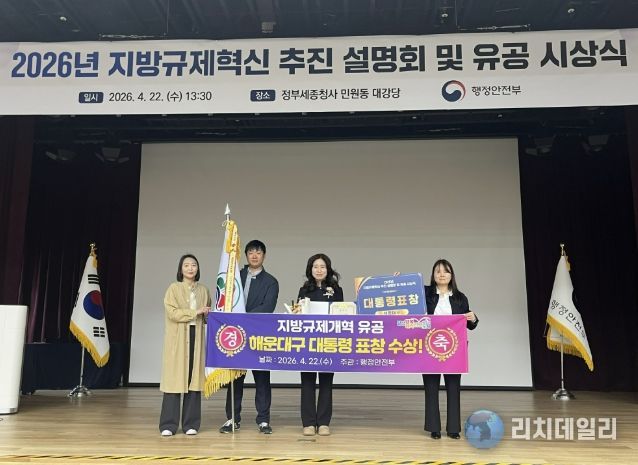 리치데일리 김상현 기자 | 해운대구는 행정안전부 주관‘2025년 지방규제혁신 추진 성과평가’에서 우수한 성과를 인정받아 지난 22일 지방규제개혁 유공 대통령 표창을 수상했다.