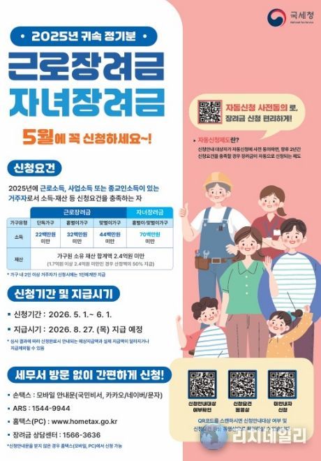 시 관계자는 “근로·자녀장려금은 저소득 가구의 실질 소득을 지원하는 중요한 제도인 만큼, 대상자들이 신청 기간을 놓치지 않도록 적극적인 참여를 당부드린다”고 말했다.